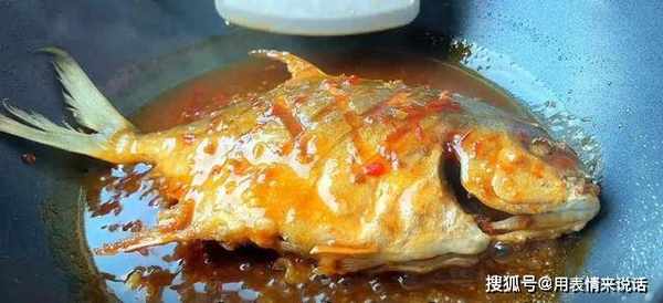 10、放入煎熟的银鲳鱼,给它左右两面吸入汁水,煮2分钟即可起锅。