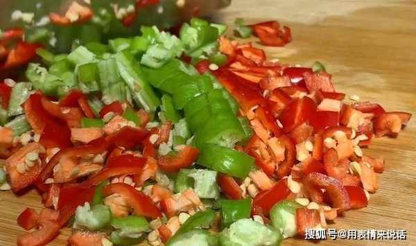 3、随后准备青红辣椒,切碎备用。