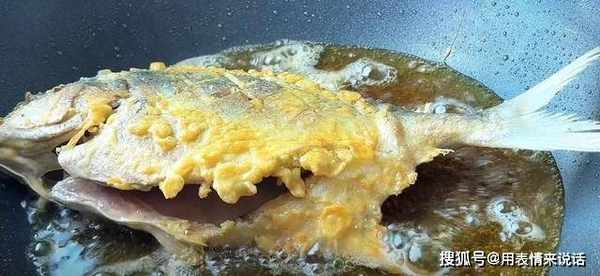 5、将蛋液倒在银鲳鱼身上,涂抹均匀。