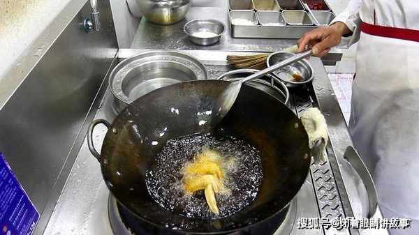 3.下面,把鸡翅过油炸一下,锅里倒入植物油,油烧至四成热的时候,把鸡翅放入油锅里炸,这个过程要开小火,把鸡翅炸成金黄色,捞出控油,在炸的过程中,要有耐心慢慢炸。