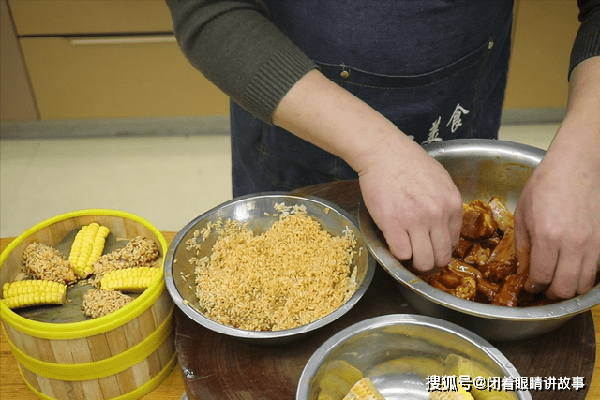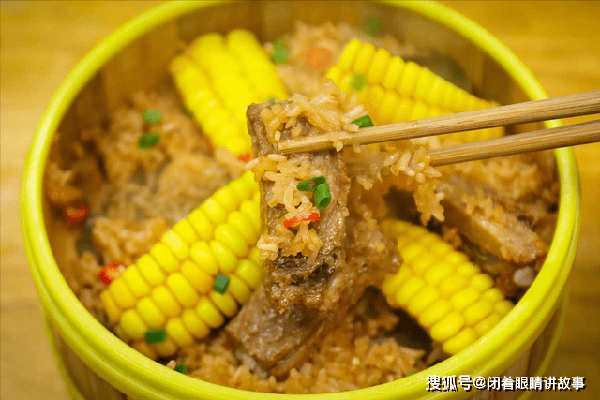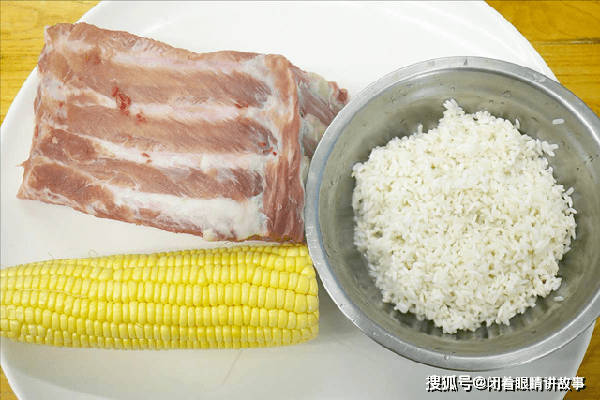 糯米一定要提前四个小时泡上,蒸出来才软糯。精肋条多准备几根,砍成段,用清水泡半个小时,去除里面的血水。玉米切成条。