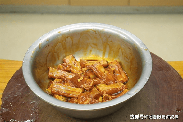 然后把泡好的排骨洗干净,加点盐、胡椒粉、鸡粉、万能十三香、老抽、生抽、蚝油提鲜。反复地抓抓揉揉,做个全身按摩,腌个十来分钟。