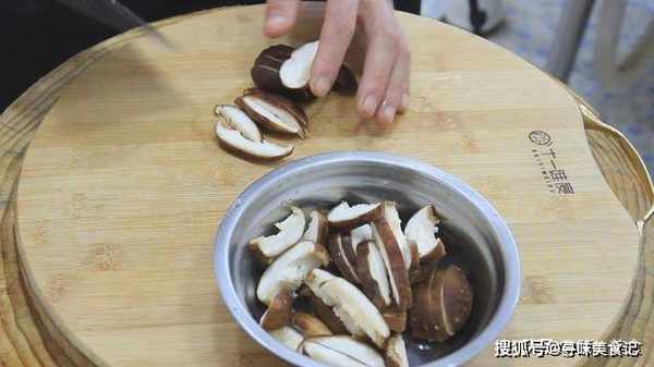 香菇40克,浸泡清洗干净以后,切成香菇片,放在盆中。