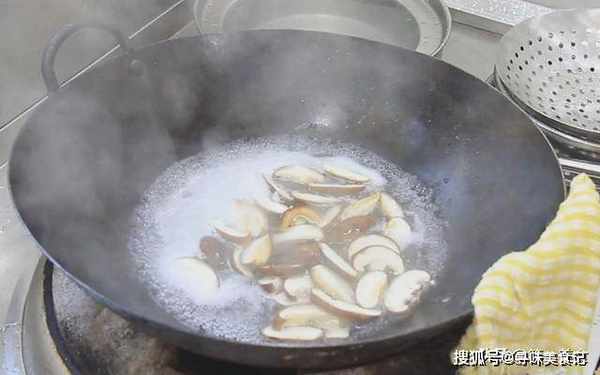 下面我们先把香菇和榨菜丝焯一下水:锅内烧水,水烧开以后,倒入香菇焯水。