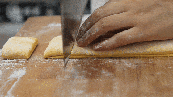 然后切成三厘米左右的方块。