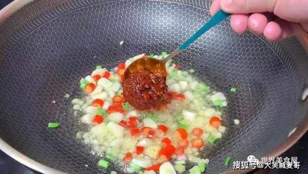 9、然后放一勺豆瓣酱,炒出红油。