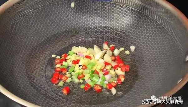 8、接着热锅,放油,倒入葱姜蒜、小米椒炒香。