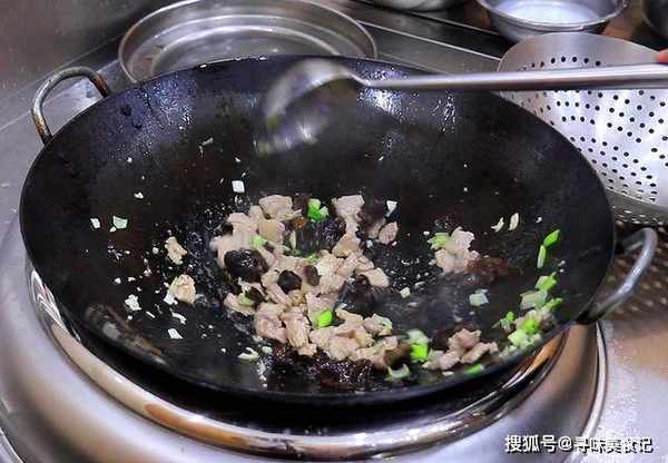 3.把锅烧热,加入植物油滑锅,滑好锅以后倒出热油加入凉油,把肉片放入锅中,煸炒出里面的肥油,肉片炒白炒香以后,放入木耳和葱蒜末一起翻炒出香味,倒入一勺清水。