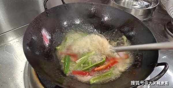 7.锅中倒大量食用油,油温烧至5成热,将腰花、青红椒、洋葱全部倒下去,快速过一遍油,然后捞出。