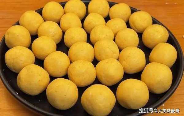 4.将面团分成均等大小的小剂子,再徒手搓圆,变成这样一颗颗黄色的南瓜汤圆。