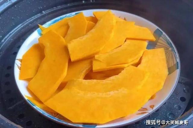 1.先准备一个老南瓜,削去外皮后切薄片,水开上汽放入蒸锅蒸熟。