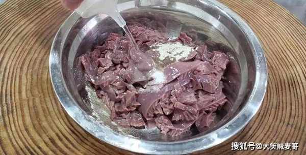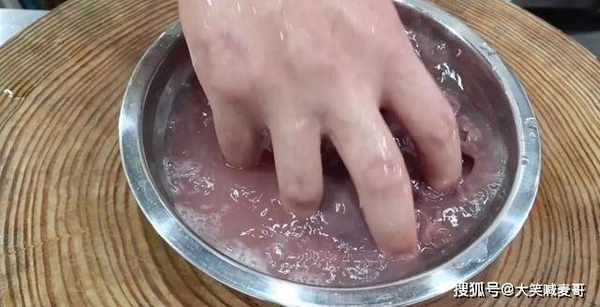 3.切好放入盆中,加清水反复抓洗,洗出血水,洗出腥味。