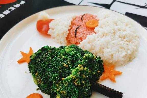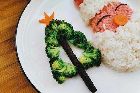 吃,对孩子来说是最大的诱惑。当然,现在的孩子爱吃的不是饭,而是炸鸡类、膨化类食品,孩子不是厌食,而是厌饭。孩子不吃饭是最让家长焦心的事情了,尤其是蔬菜类。趁着圣诞节这个档口,把饭做成可爱的圣诞老人饭团,用西兰花做成圣诞树,一定会让孩子觉得新奇,食欲大开。