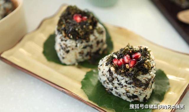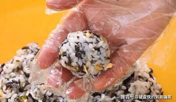 2、将米饭抓一把,搓成团子造型,简单的紫菜饭团就完成。大家可以将它当做早餐,做法简单,营养又美味。