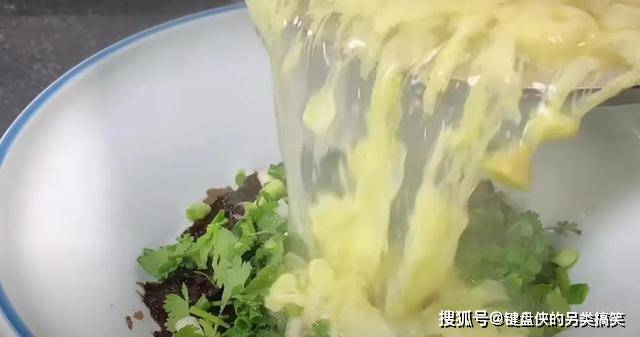 1、准备紫菜,用滚烫的热水泡1分钟,捞起来另外放碗中。里面继续放香菜、葱花、胡椒盐等备用。