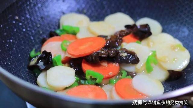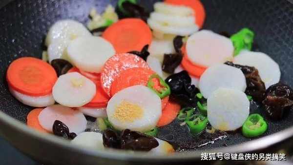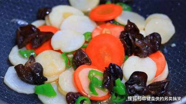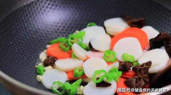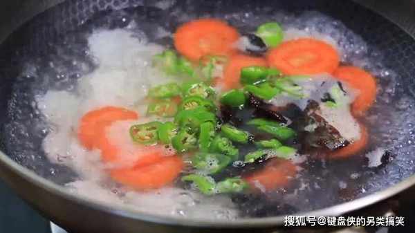 2.准备一些配菜,胡萝卜切薄片,辣椒切圈,木耳温水泡发。