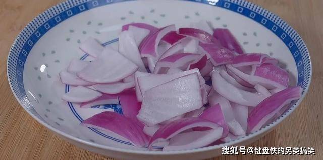 2.半个洋葱对半切开,再切成小块,装盘备用。