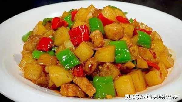 7.倒入土豆片,青红椒圈,适量食盐、白糖、生抽、蚝油,韭菜。