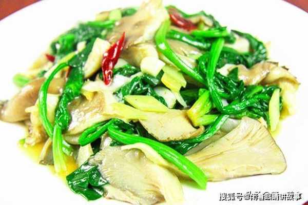 锅内烧油,放葱姜蒜片、干辣椒爆香,倒入菠菜开大火快速翻炒,火小的话菠菜容易出水。菠菜微微塌软以后倒入平菇翻炒均匀,加入蚝油5克、食盐2克、鸡粉2克、胡椒粉1克调味,勾入水淀粉让料汁更好的吸附在平菇上面,继续翻匀后即可出锅装盘。