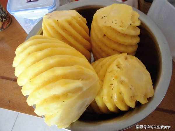 说得都很有道理,可是当店里只卖其中一种的话,在没有任何对比的情况下,相信你还是会拿错的。除了外表有差别,内部也有差别,凤梨是不需要挖孔和泡盐水这些步骤的,而菠萝中因为含有一种特殊的酶,所以需要放在盐水里浸泡。街上在卖的盐水菠萝,一般就是菠萝了,虽然凤梨也可以泡一泡,但是很少有商家会这么做,进货也不便宜,对小贩来说更美必要。