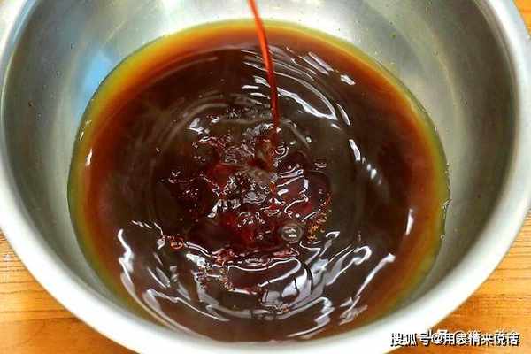 然后在卤水里面倒入食盐,白糖,鸡精,生抽,香醋,蚝油,花椒油,喜欢吃辣的,还可以放一点辣椒红油,搅拌化开调料。
