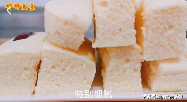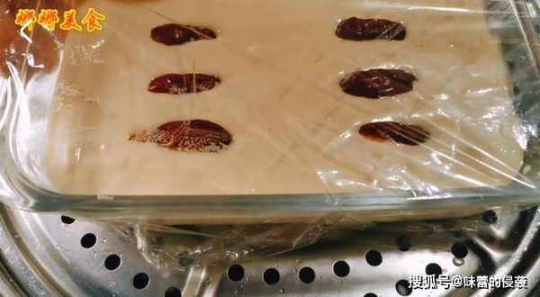 最后盖上保鲜膜,放入蒸锅中,水开之后计时,蒸20分钟焖3分钟出锅,稍微放凉之后脱模切小块即可开吃.