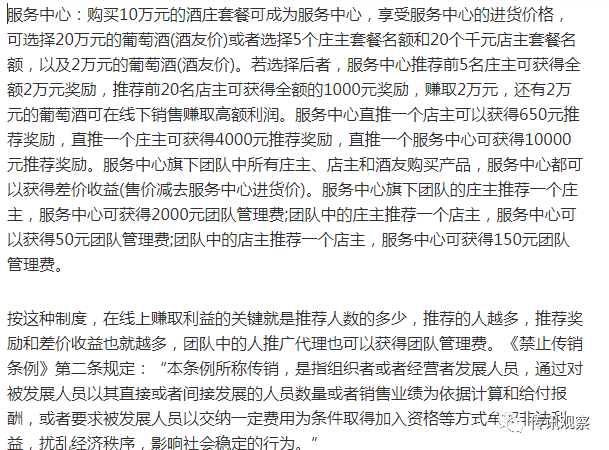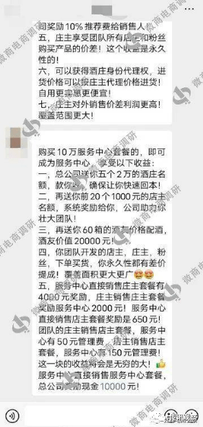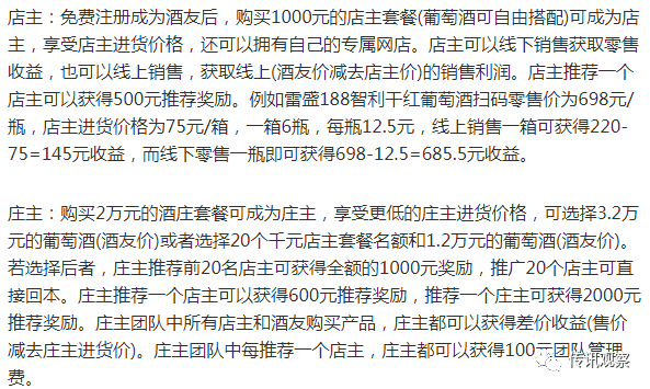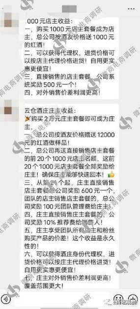 据了解,云仓酒庄的代理商分为三个级别,店主、酒庄和服务中心,不同的等级享受不同的进货价格,成为代理商不仅自购优惠,还可以卖酒赚钱、推广赚钱。