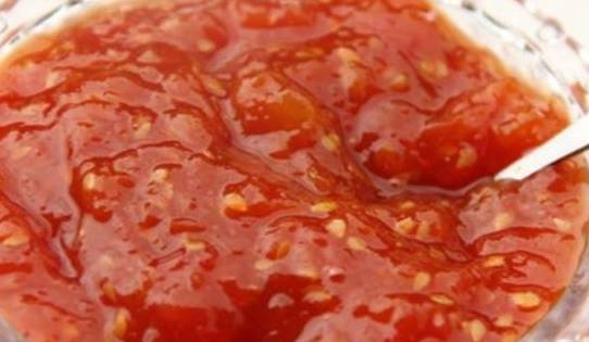 再加5茶匙盐,继续熬煮西红柿至浓稠的酱状态,关火,冷凉。