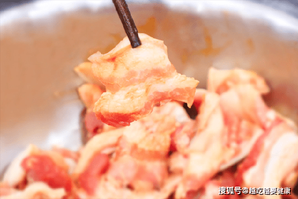 带皮五花肉300克,切成均匀的薄片放入盆中,加入蚝油5克增鲜,老抽2克调底色,抓拌均匀腌制10分钟。