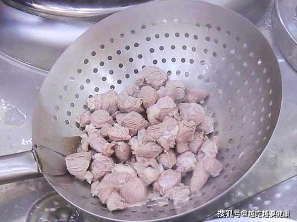 起锅烧水,冷水将羊肉放入锅中焯水,大火烧开以后打去锅中的浮沫,大约煮2分钟,把羊肉倒出来用清水洗干净备用。