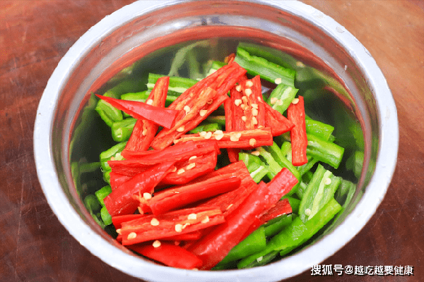 准备几根线椒、几根美人椒,分别破开后取出辣椒籽,切成一样长的段,青红椒搭配成菜更好看;另外切点姜片、蒜片、小葱段备用。