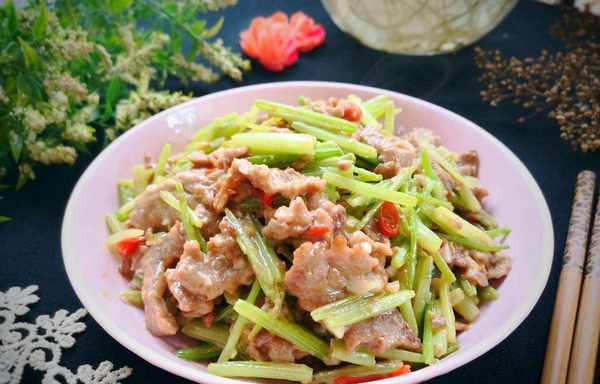 食材:麦芹1把、肉牛一块、小米椒3根、蒜3粒、姜一块、1个鸡蛋清、2勺生抽、1勺老抽、1勺胡椒粉、1勺淀粉、少许料酒、清水、1勺食用油、少许盐。