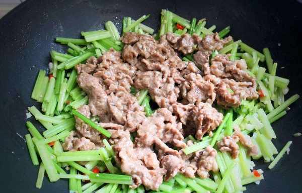 10、一道鲜香滑嫩的芹菜炒牛肉就做好了,每次做这道菜的时候,孩子总会多吃一碗饭。