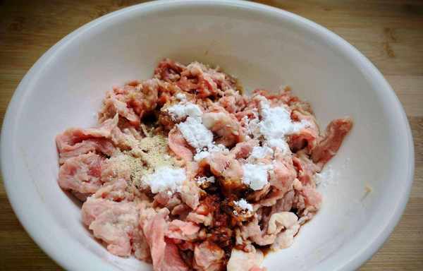 3、牛肉里加入1个鸡蛋清,2勺生抽,1勺老抽,1勺胡椒粉,1勺淀粉少许料酒和清水用手抓匀,再加入1勺食用油。