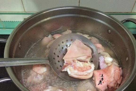 做法:材料当然是新鲜的好,购买的时候尽量不要买冰冻的猪脚