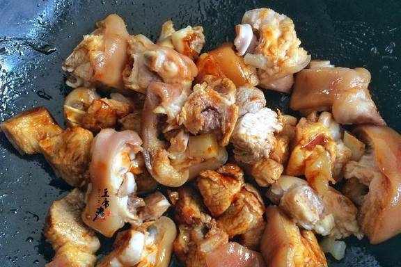 倒入猪脚翻炒几下