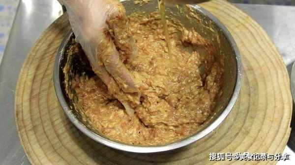 加入生抽提味,加入食盐2克,鸡粉2克,胡椒粉2克,十三香2克,快速搅拌上劲 ,利用搅拌摩擦,撕裂蛋白质,让肉馅更好的吸收葱姜水和调料,这个过程要持断3到5分钟左右。