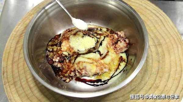 接下来把葱姜水倒一部分在肉馅中,加入老抽提一下底色。