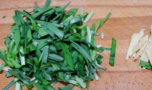 3、切好姜丝和韭菜段,韭菜不用太多;