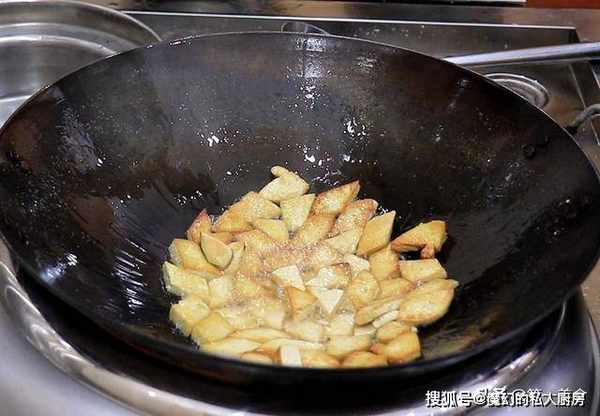 3.把豆腐煎一下: