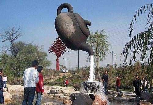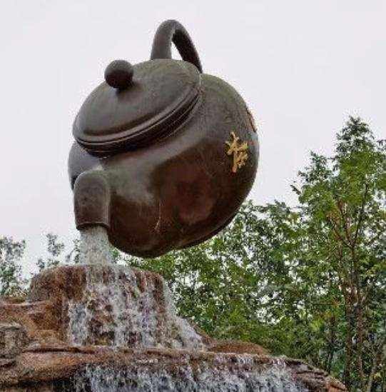 虽然说站在远处看确实是非常神奇的,但是当地你走到近处之后,就能发现其中的奥秘。其实在茶嘴以及茶杯之间是有一个柱状物体的,这就是茶壶的支撑点,只不过隐藏在水流当中,不是很容易发现罢了。