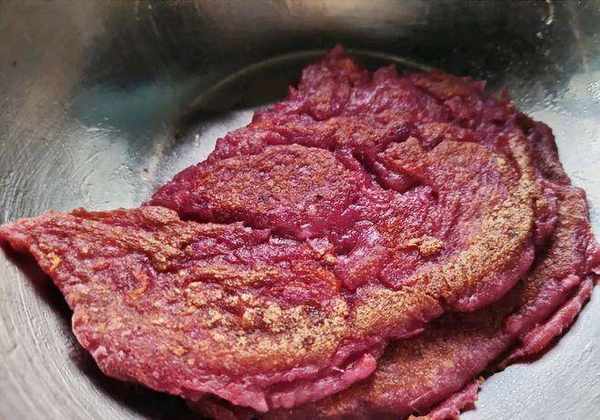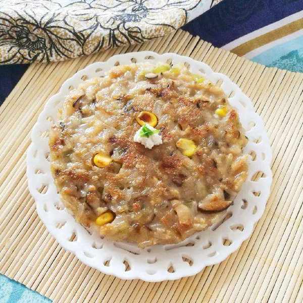 6.将调好的团块均匀地铺在电饭锅里,等它转动,然后等它关了灯再食用。