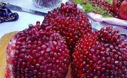最好认的就是第三种水果了,明眼人一看就知道这肯定是石榴,不过,把石榴去皮之后还能保持这样的造型,特别好奇是谁这么厉害!绝对是一枚高级吃货啊!