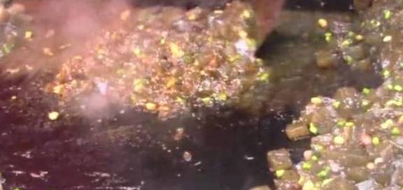 只见在小伙的摊子前面摆了一个铁板,铁板上面放了很多切碎的凉粉,小伙说他家的凉粉之所以好吃,主要是这凉粉他是从一家纯手工制作的红薯凉粉制作的作坊定做的原料,所以味道纯正,很受欢迎,在铁板的一边是加过调料的凉粉,另外一边是加了调料的凉粉,在凉粉里面加上青豆,和辣椒酱,和其他的调料!