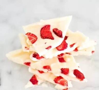 草莓酸奶烤脆片。颜值极高的一款甜点,看起来是不是特别好吃!酸奶和草莓一向很登对。脱水的草莓干加酸奶,酸甜正好。