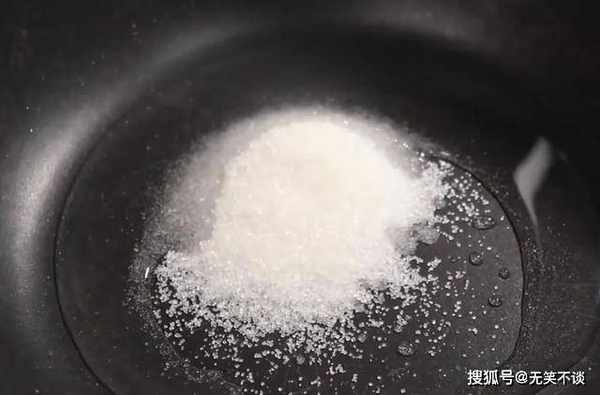6、接着热锅,放两勺砂糖,小半碗清水,煮成糖水。