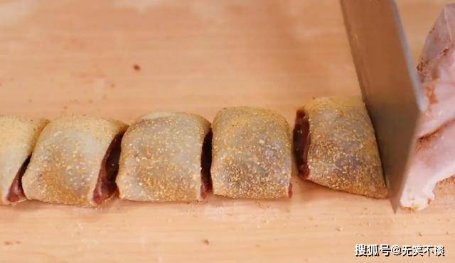 8、接着将它切成小段,驴打滚就完成了。