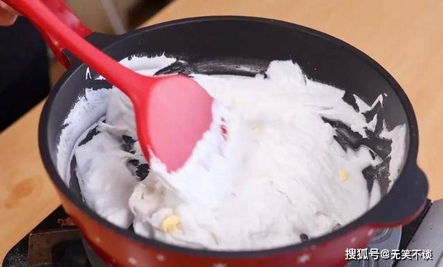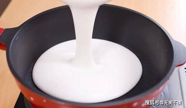 3、又添加牛奶,一边搅拌,一边添加。