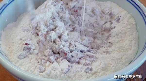 2、接着在红枣中加入糯米粉。