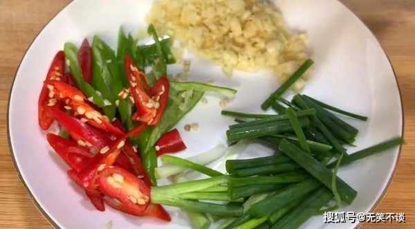 5、还要准备青红辣椒、大蒜、葱段等配料。